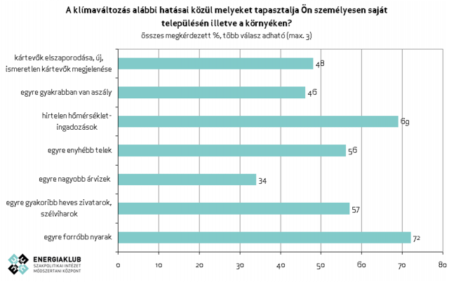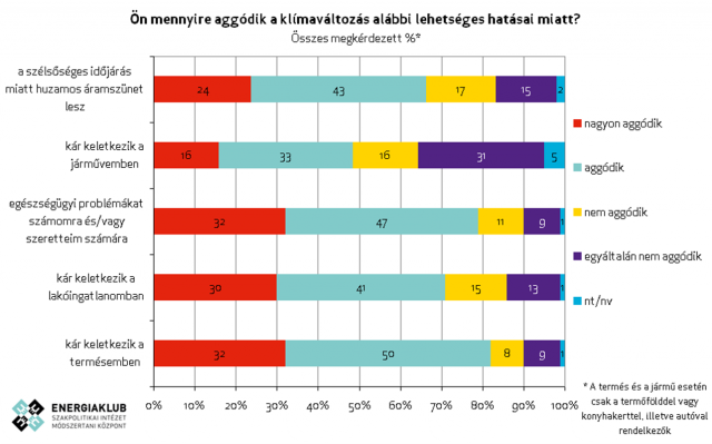 A válaszadók leginkább attól tartanak, hogy a klímaváltozás egészségügyi problémákat okoz számukra vagy szeretteik számára Sokan aggódnak amiatt, hogy kár keletkezik lakóingatlanukban, illetve termésükben, valamint hogy a szélsőséges időjárás miatt huzamos ideig tartó áramszünetek alakulnak ki.