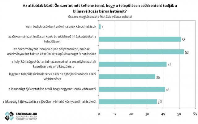 A magyar lakosság több mint 70%-a védtelennek érzi magát a klímaváltozás hatásaival szemben. A válaszadók 64%-a érzi úgy, hogy nem kap elég segítséget ahhoz, hogy védekezni tudjon ezek ellen. A felmérés eredményei szerint a lakosok fele azt gondolja, hogy az önkormányzatának konkrét védekező intézkedéseket kellene indítania a településen.
