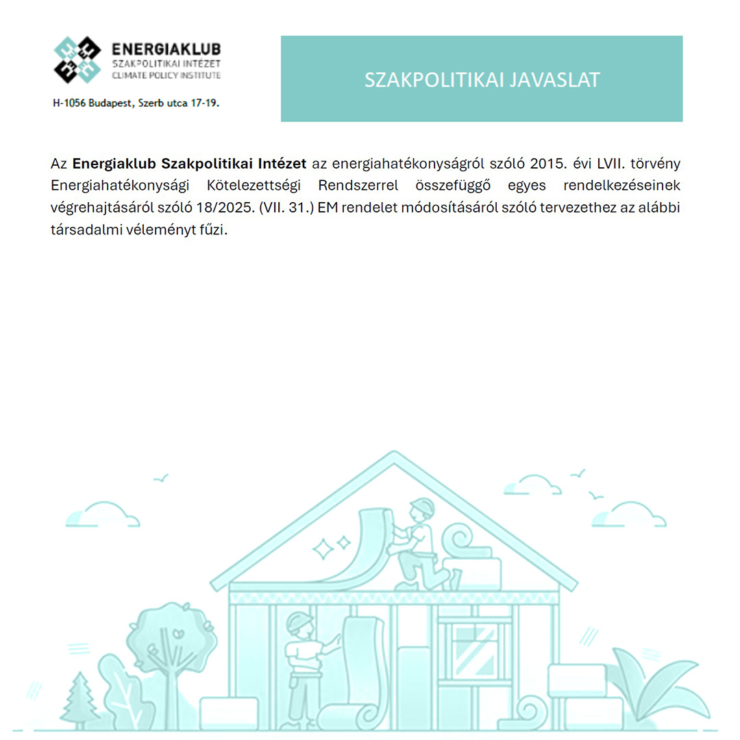 Az Energiaklub Szakpolitikai Intézet társadalmi véleményt nyújtott be az energiahatékonyságról szóló 2015. évi LVII. törvényhez kapcsolódó, az Energiahatékonysági Kötelezettségi Rendszer (EKR) egyes rendelkezéseinek végrehajtását szabályozó 18/2025. (VII. 31.) EM rendelet módosításáról szóló tervezethez.