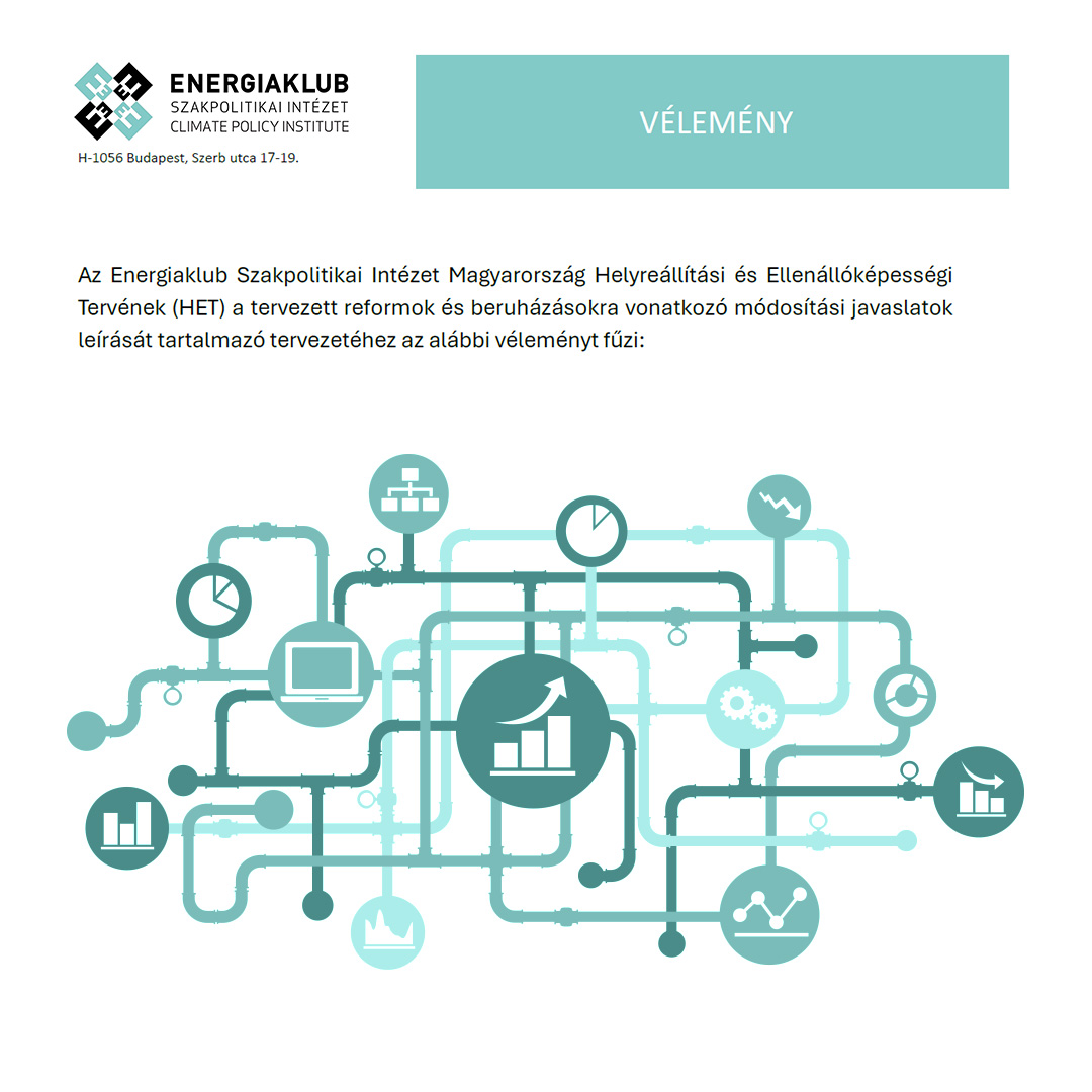 The Energiaklub Climate Policy Institute has submitted its policy opinion on the proposed amendments to Hungary’s Recovery and Resilience Plan (RRP), as coordinated by the National Development Centre and overseen by the RRF Monitoring Committee. In our view, the proposed changes pose a serious threat to the success of Hungary’s green energy transition, especially in terms of renewable energy deployment, tackling energy poverty, and upgrading the electricity grid.